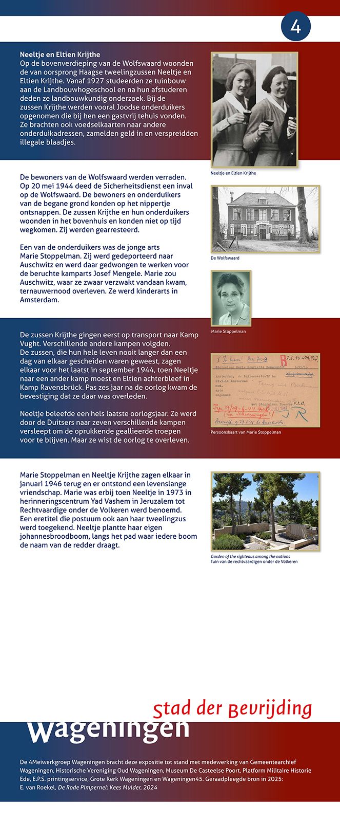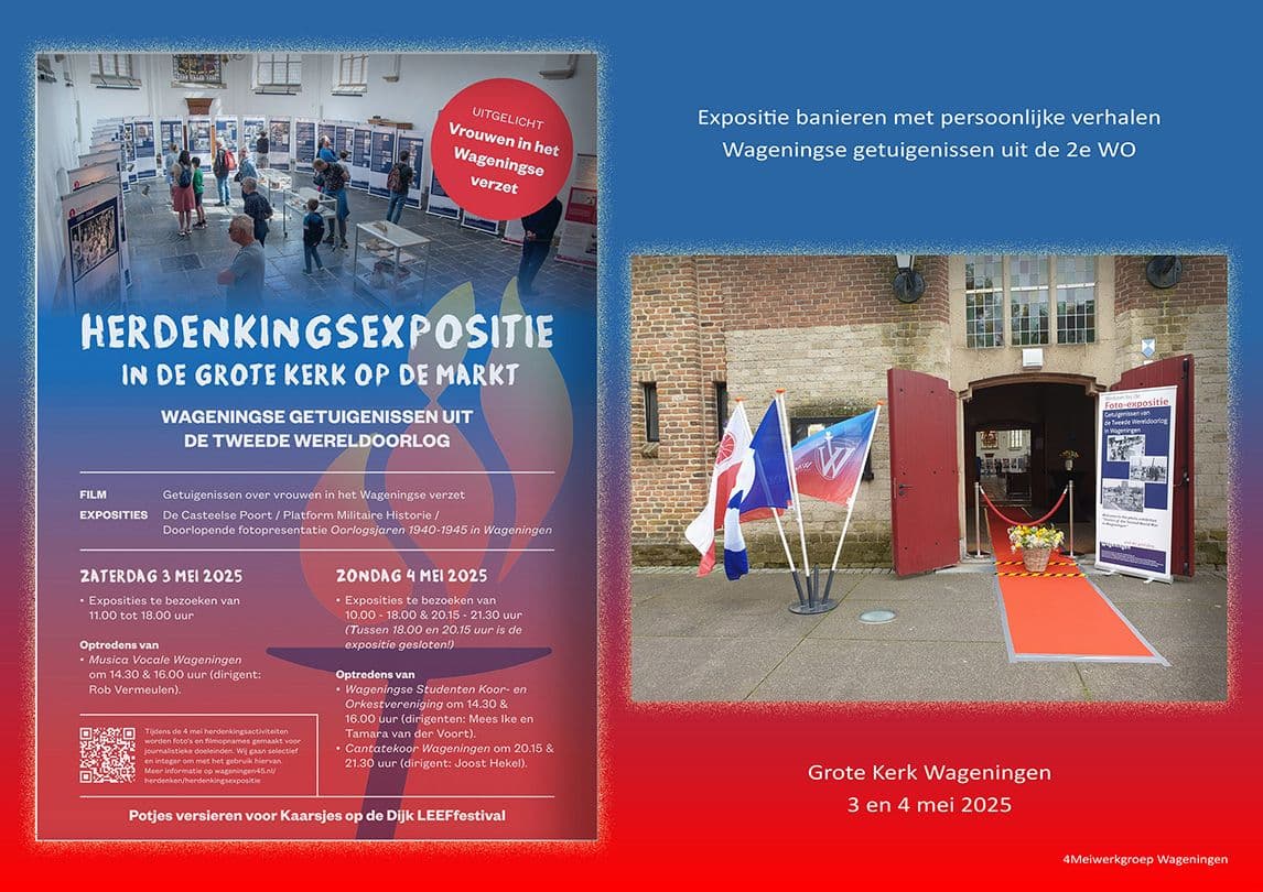 De herdenkingsexpositie is op 4 mei te bezichtigen, in de Grote Kerk op de Markt in Wageningen, van 10:00 tot 19:00 uur en van 20:15 tot 22:30 uur.