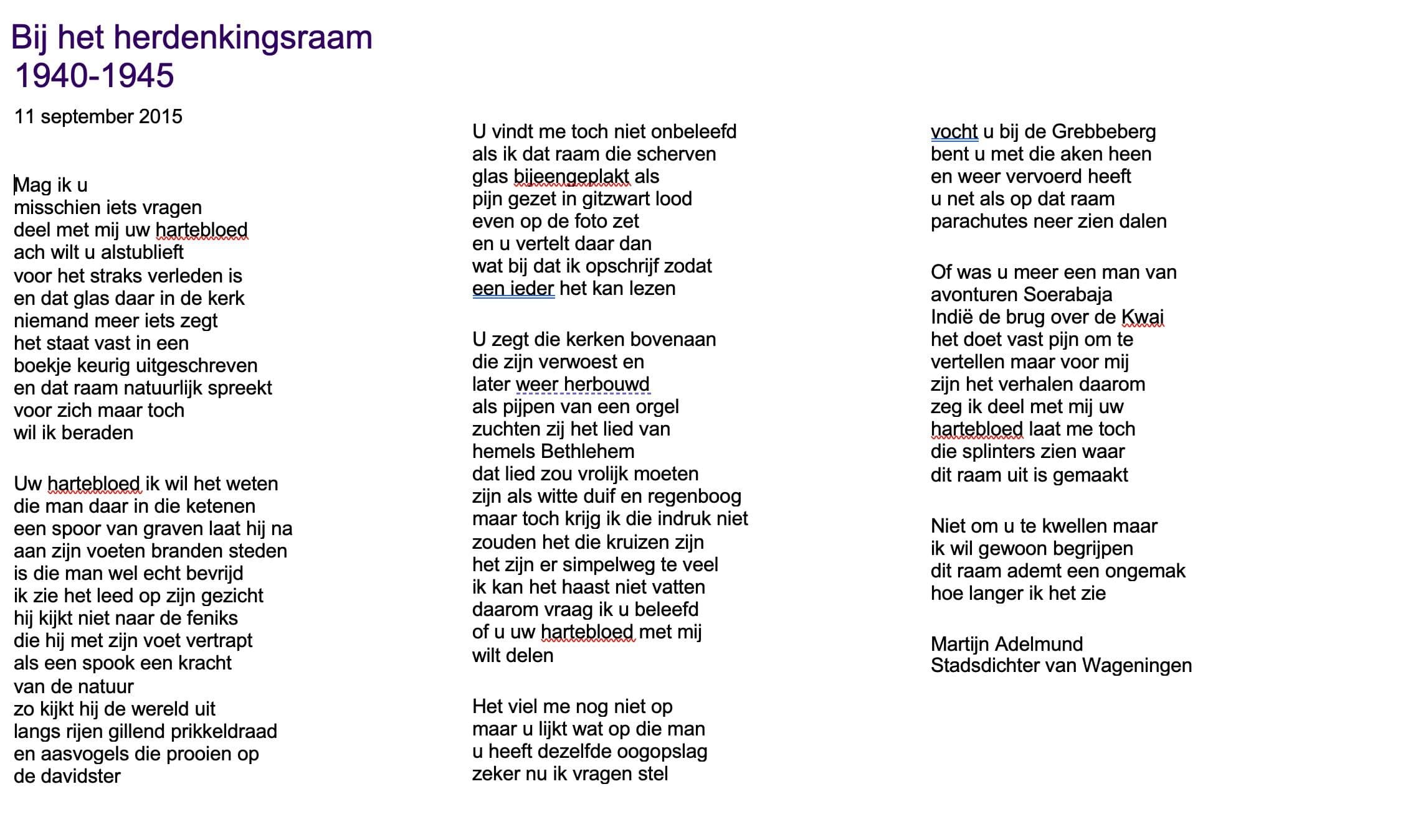 Lees hier het gedicht van Martijn Adelmund tijdens de opening op 4 mei 2025